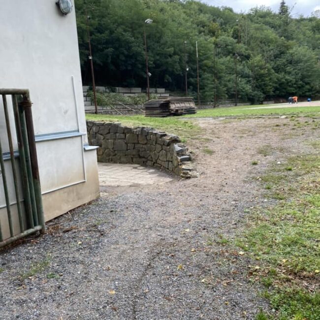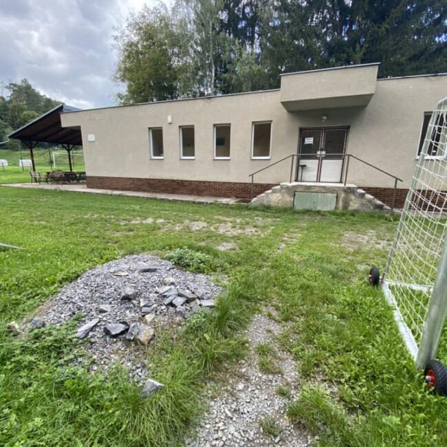 Hřiště za sokolovnou. Odhadově 10 let zpátky zde proběhla oprava tribun, kterou by bylo dobré dokončit. Jsme pro spolupráci se Sokolem na celkovém zkvalitnění sportoviště.